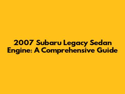 2007 Subaru Legacy Sedan Engine: A Comprehensive Guide