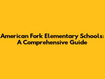 American Fork Elementary Schools: A Comprehensive Guide