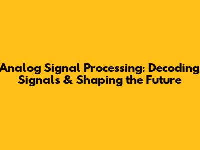Analog Signal Processing: Decoding Signals & Shaping The Future