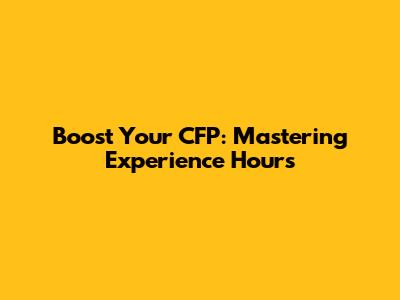 Boost Your CFP: Mastering Experience Hours