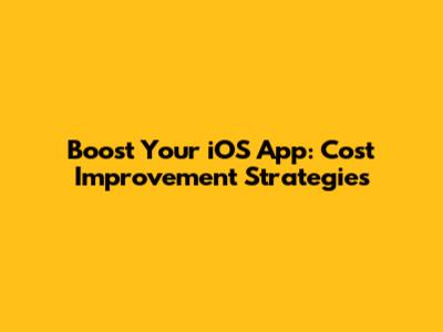 Boost Your IOS App: Cost Improvement Strategies