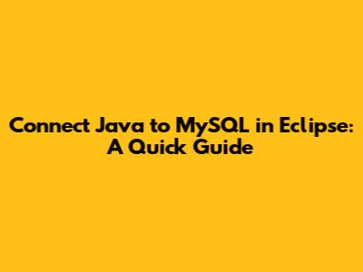 Connect Java To MySQL In Eclipse: A Quick Guide