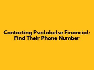 Contacting Pseilobelse Financial: Find Their Phone Number