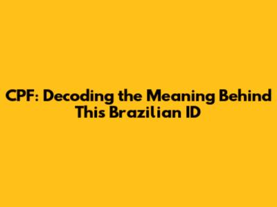 CPF: Decoding The Meaning Behind This Brazilian ID