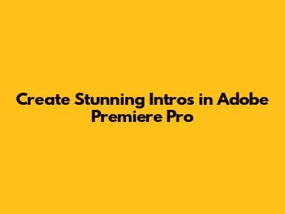 Create Stunning Intros In Adobe Premiere Pro