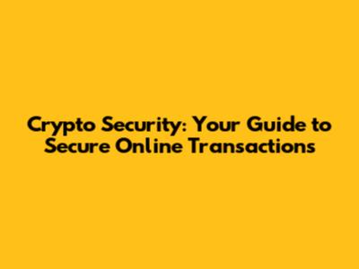 Crypto Security: Your Guide To Secure Online Transactions