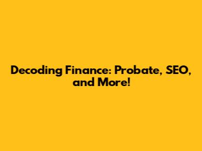 Decoding Finance: Probate, SEO, And More!