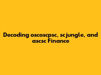 Decoding Oscoscpsc, Scjungle, And Ascsc Finance