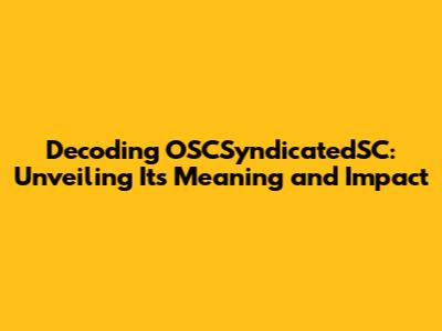 Decoding OSCSyndicatedSC: What Does It Really Mean?
