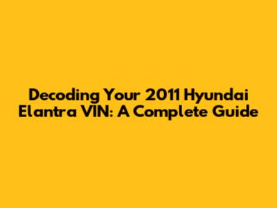 Decoding Your 2011 Hyundai Elantra VIN: A Complete Guide