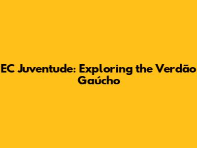 Hey guys, let's dive into the world of EC Juventude, a club steeped in history and passion from the heart of Rio Grande do Sul, Brazil. Known affectionately as the Verdão Gaúcho (the Green Giant from Rio Grande do Sul), Juventude has carved a significant space for itself in Brazilian football. We'll explore everything from its humble beginnings to its memorable moments and its impact on the local community and beyond. Ready to learn more? Let's get started!