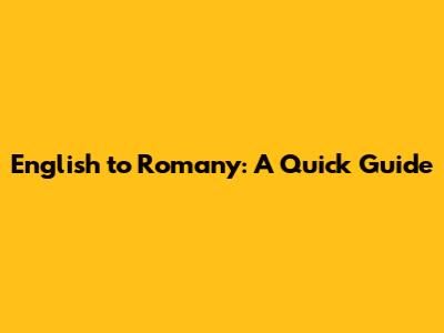 English To Romany: A Quick Guide