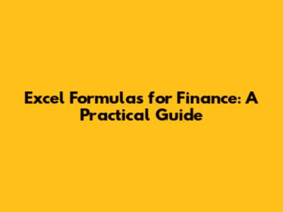 Excel Formulas For Finance: A Practical Guide