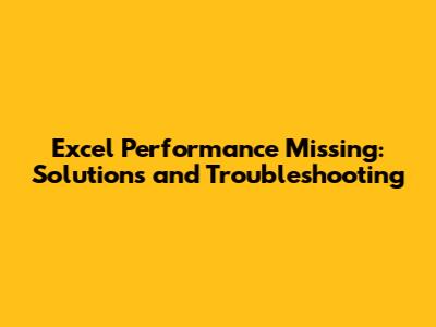 Excel Performance Missing: Solutions And Troubleshooting