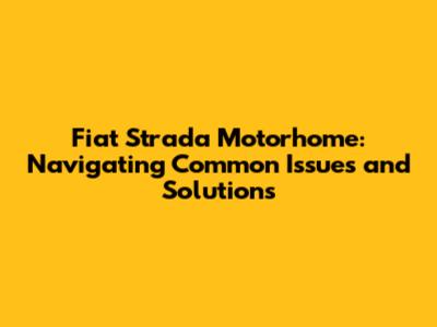 Fiat Strada Motorhome: Common Issues And Solutions