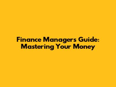 Finance Manager's Guide: Mastering Your Money