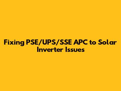 Fixing PSE/UPS/SSE APC To Solar Inverter Issues