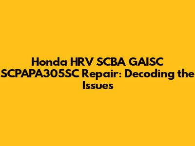 Honda HRV SCBA GAISC SCPAPA305SC Repair: Decoding the Issues
