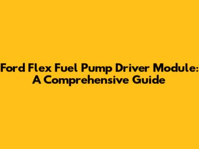 Ford Flex Fuel Pump Driver Module: Troubleshooting & Replacement