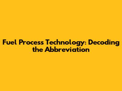 Fuel Process Technology: Decoding The Abbreviation