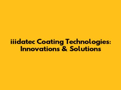 Iiidatec Coating Technologies: Innovations & Solutions