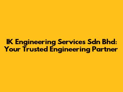 What Exactly Does IK Engineering Services Sdn Bhd Do?