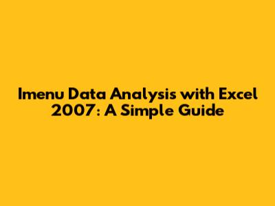Imenu Data Analysis With Excel 2007: A Simple Guide