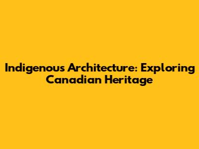 Indigenous Architecture: Exploring Canadian Heritage