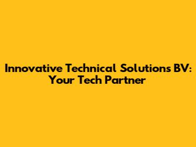 Innovative Technical Solutions BV: Your Tech Partner