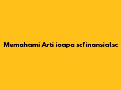 Apa Itu ioapa scfinansialsc?