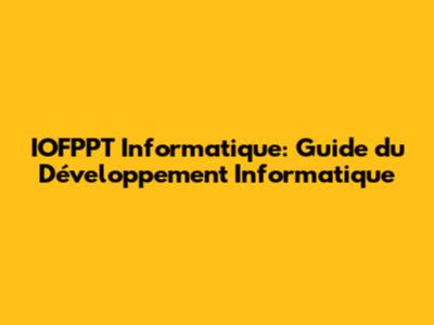 IOFPPT Informatique: Guide Du Développement Informatique