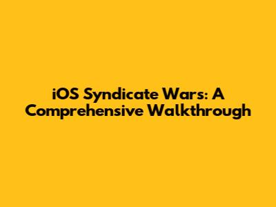IOS Syndicate Wars: A Comprehensive Walkthrough
