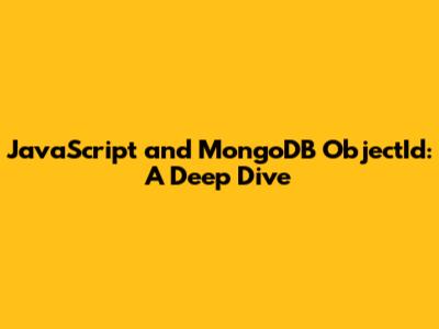 JavaScript And MongoDB ObjectId: A Deep Dive