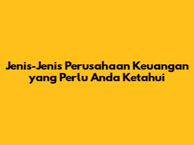 Jenis-Jenis Perusahaan Keuangan Yang Perlu Anda Ketahui