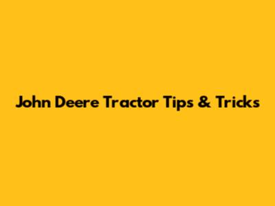 John Deere Tractor Tips & Tricks