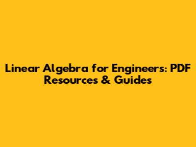 Hey guys! Are you an engineer looking to brush up on your linear algebra skills, or maybe you're a student diving into the subject for the first time? Either way, you've come to the right place! Linear algebra is a fundamental tool in many engineering disciplines, and having a solid grasp of its concepts can seriously boost your problem-solving abilities. In this article, we're going to explore why linear algebra is so crucial for engineers, discuss key topics you'll encounter, and most importantly, point you toward some fantastic PDF resources and guides that can help you master this essential subject. So, let's dive in and unlock the power of linear algebra together!