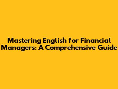 Mastering English For Financial Managers: A Comprehensive Guide