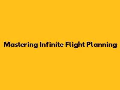 Mastering Infinite Flight Planning