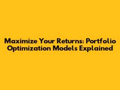 Maximize Your Returns: Portfolio Optimization Models Explained
