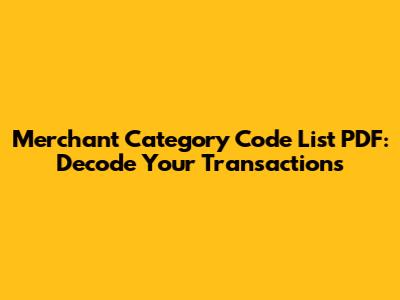 Merchant Category Codes: A Comprehensive PDF Guide