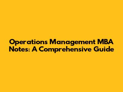 Operations Management MBA Notes: A Comprehensive Guide