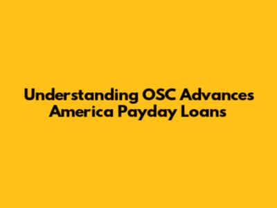 Understanding OSC Advances America Payday Loans