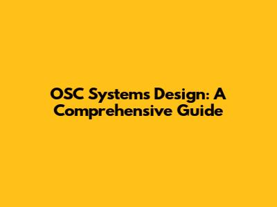 OSC Systems Design: A Comprehensive Guide