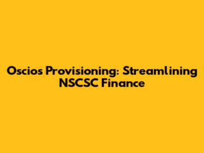 Oscios Provisioning: Streamlining NSCSC Finance