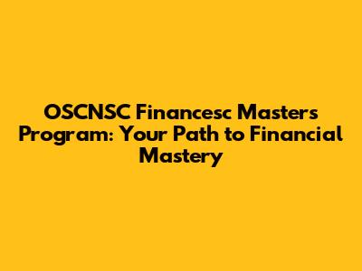 OSCNSC Financesc Masters Program: Your Path To Financial Mastery