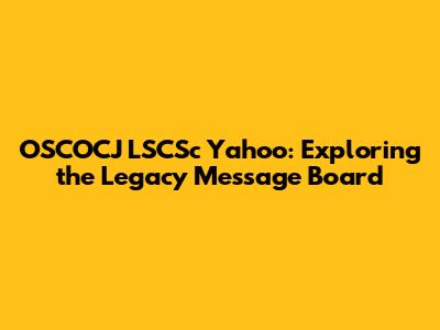OSCOCJ LSCSc Yahoo: Exploring The Legacy Message Board