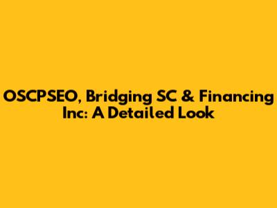 OSCPSEO, Bridging SC & Financing Inc: A Detailed Look