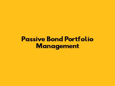 Passive Bond Portfolio Management: A Simple Guide