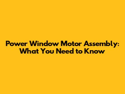 Power Window Motor Assembly: What You Need To Know