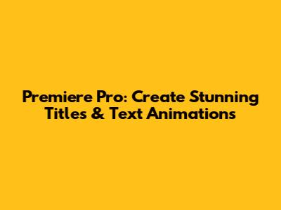 Premiere Pro: Create Stunning Titles & Text Animations